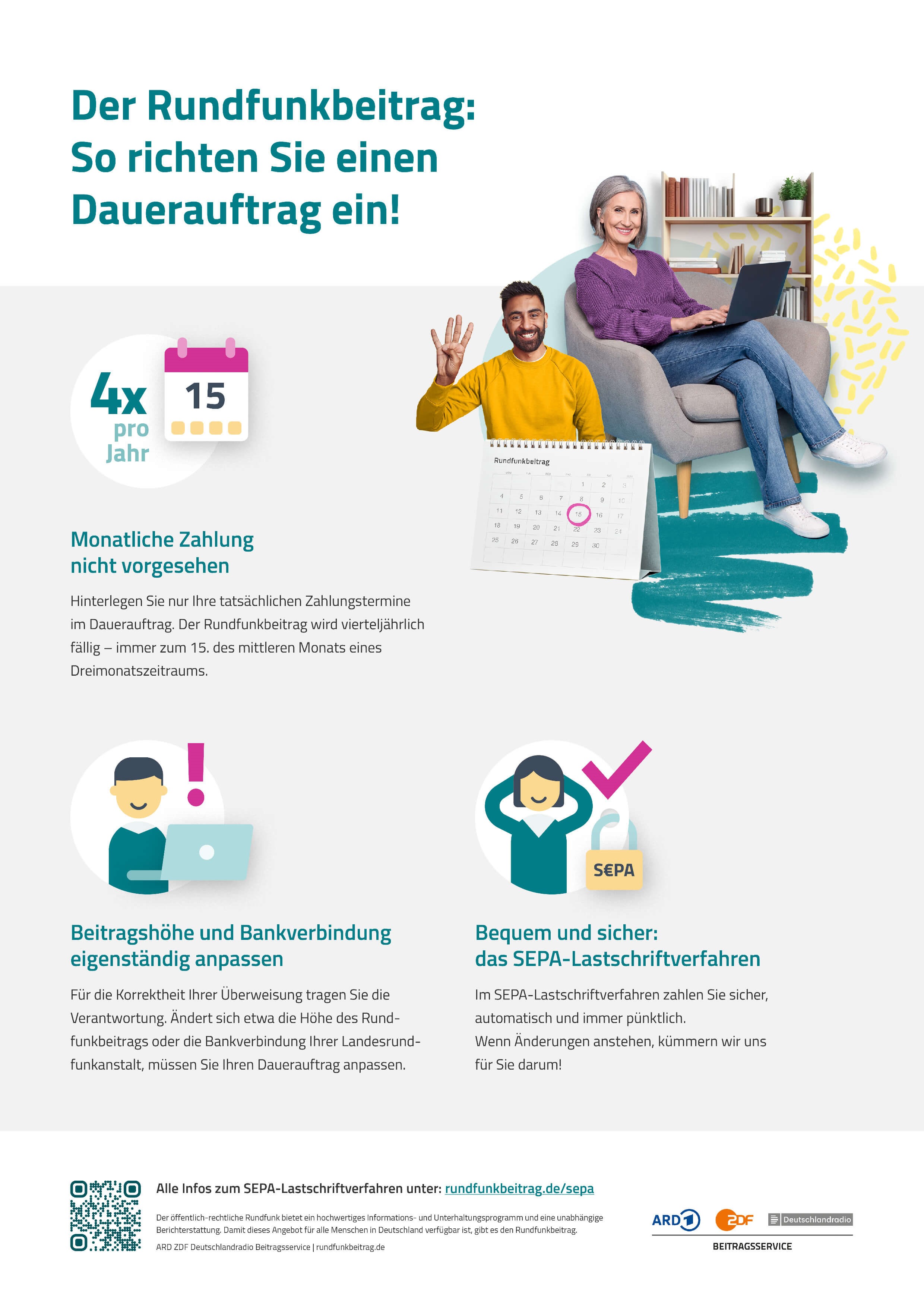 Beim Rundfunkbeitrag dauerhaft sorgenfrei: Mit dem Dauerauftrag geht’s!